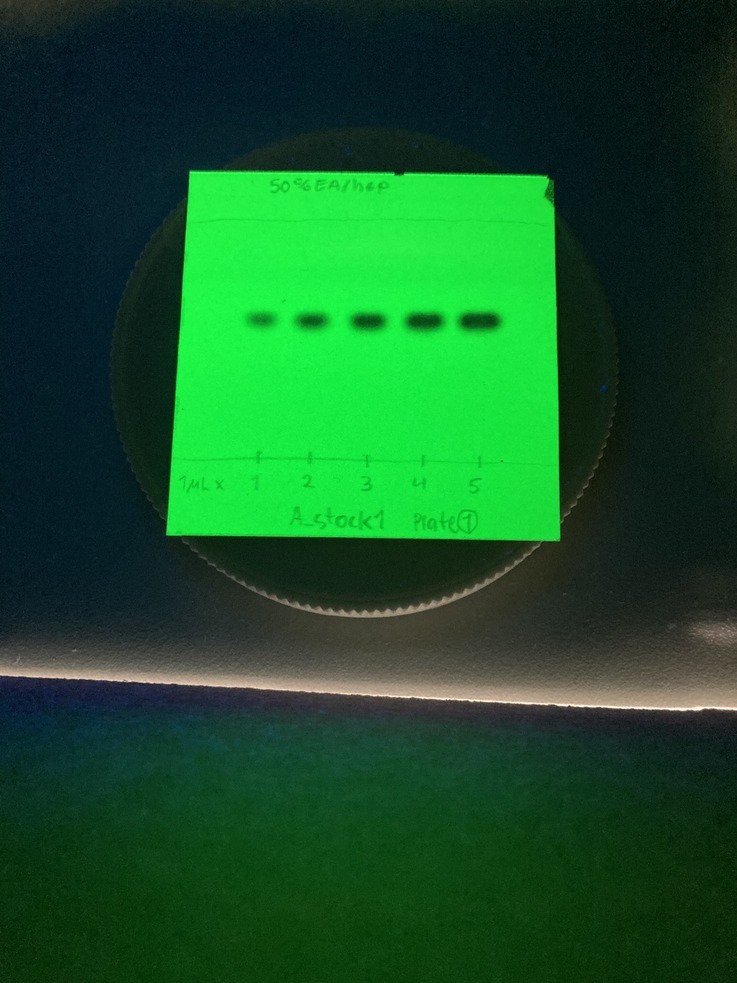 If you want to try out Elutioplate, you can download the Example TLC Plate used in the Manual here. This TLC plate contains various concentrations of N-Benzyl Benzamide, as listed in the table below. Using the intensity calculation, a linear relationship between concentration and intensity can be found.